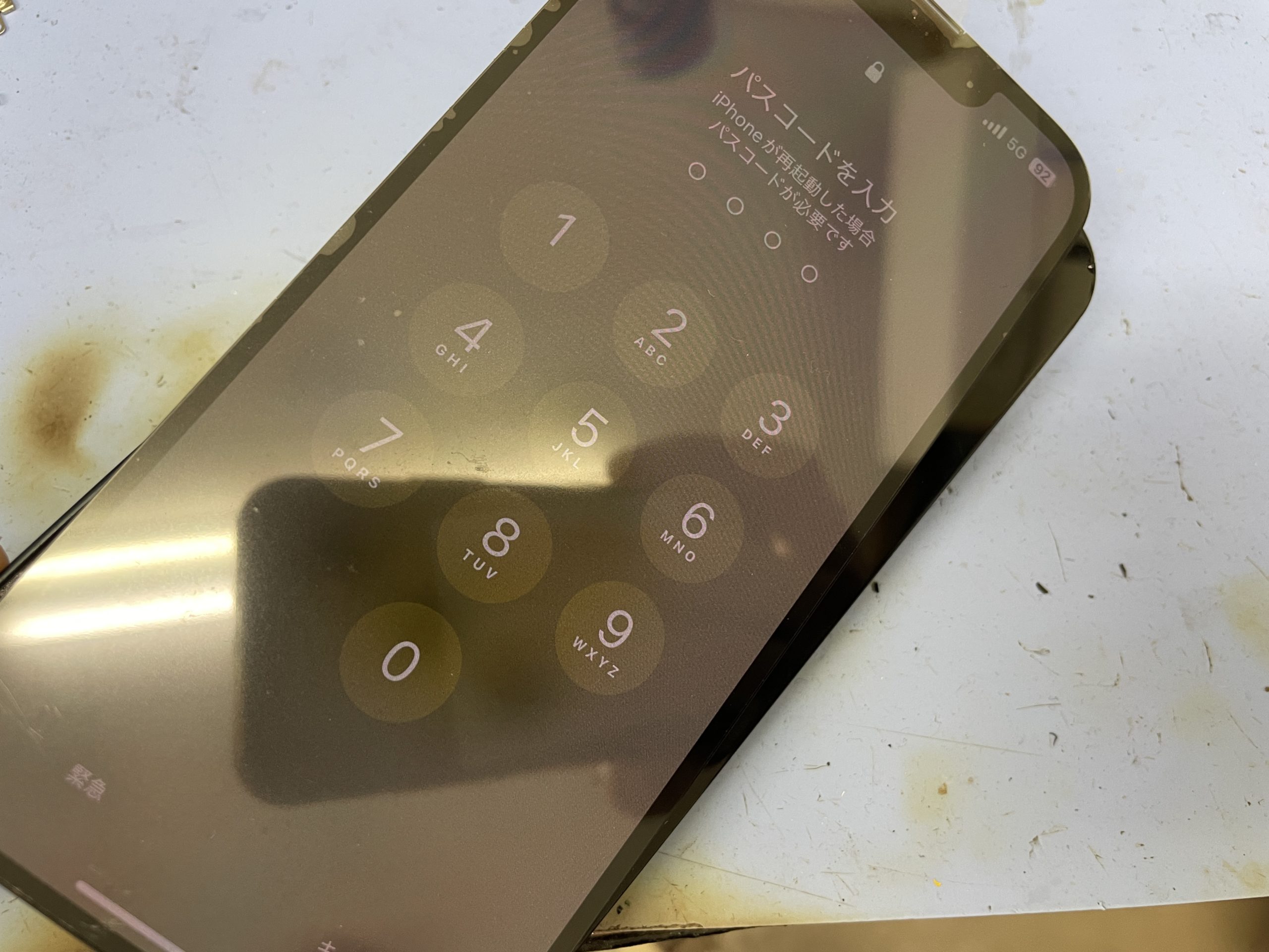 受付時に分解し確認してみると画面パーツに液体による損傷で白く腐食しているのが確認出来ました。
