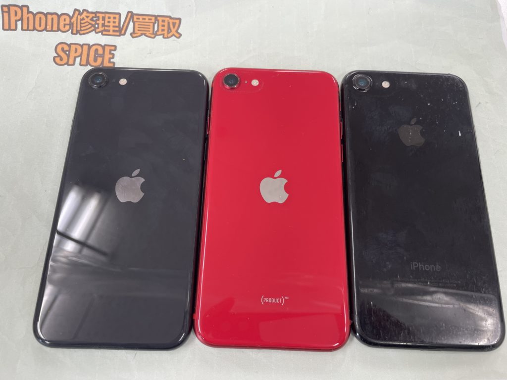 SE2は1台がガラス割れ、もう1台がバッテリー劣化の状態、7は目立つ傷が多数ある状態ですがまとめて3台買取成立です。