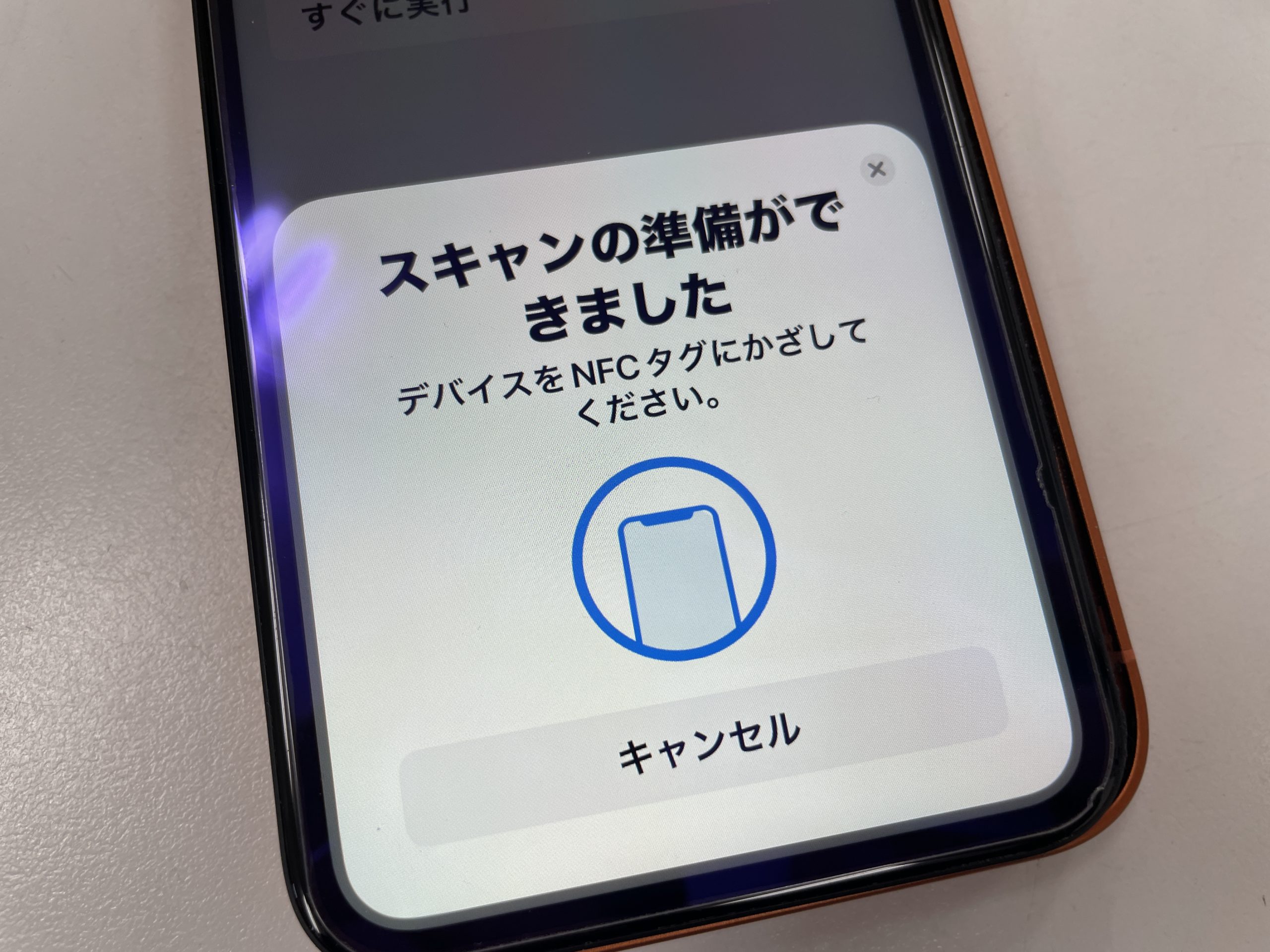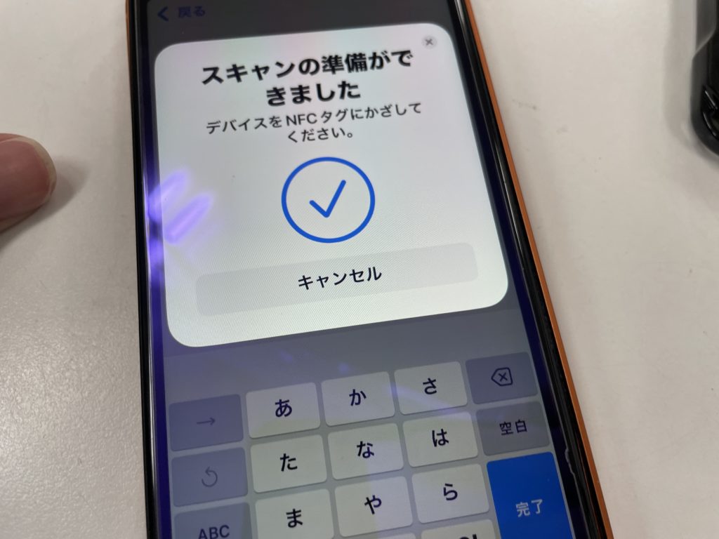 受付時にNFCの動作確認を行うとこの画面のままカードを一切読み取れない状態でした。