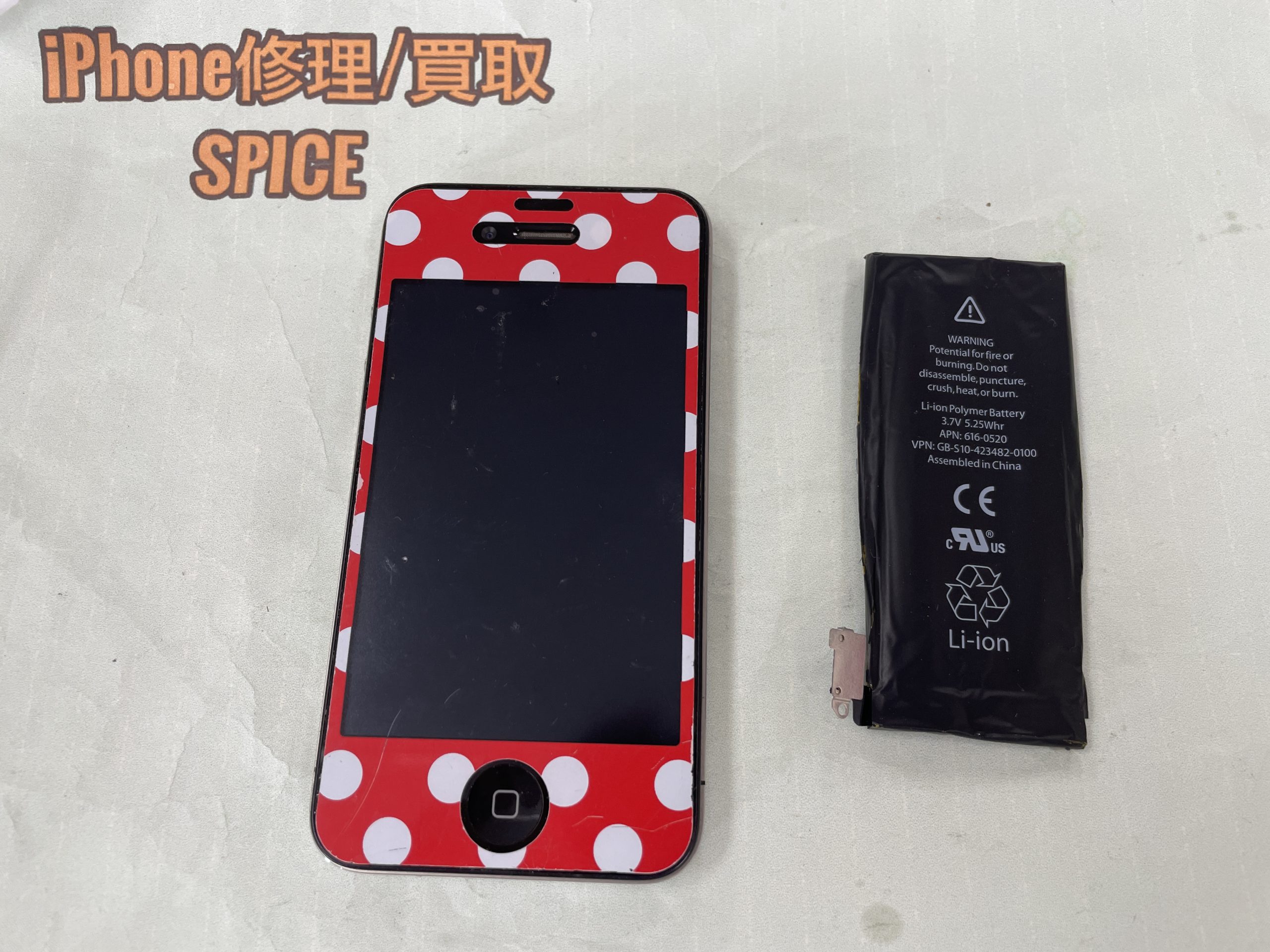 引き出しから昔使用されていたiPhone4が出てきたもののバッテリーが膨張し電源が入らない状態でした。